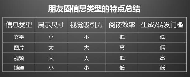 图片、视频类型的“生成/转发门槛” 最高,其他形式的推广都较低。在朋友圈发图片视频的优点有哪些呢?