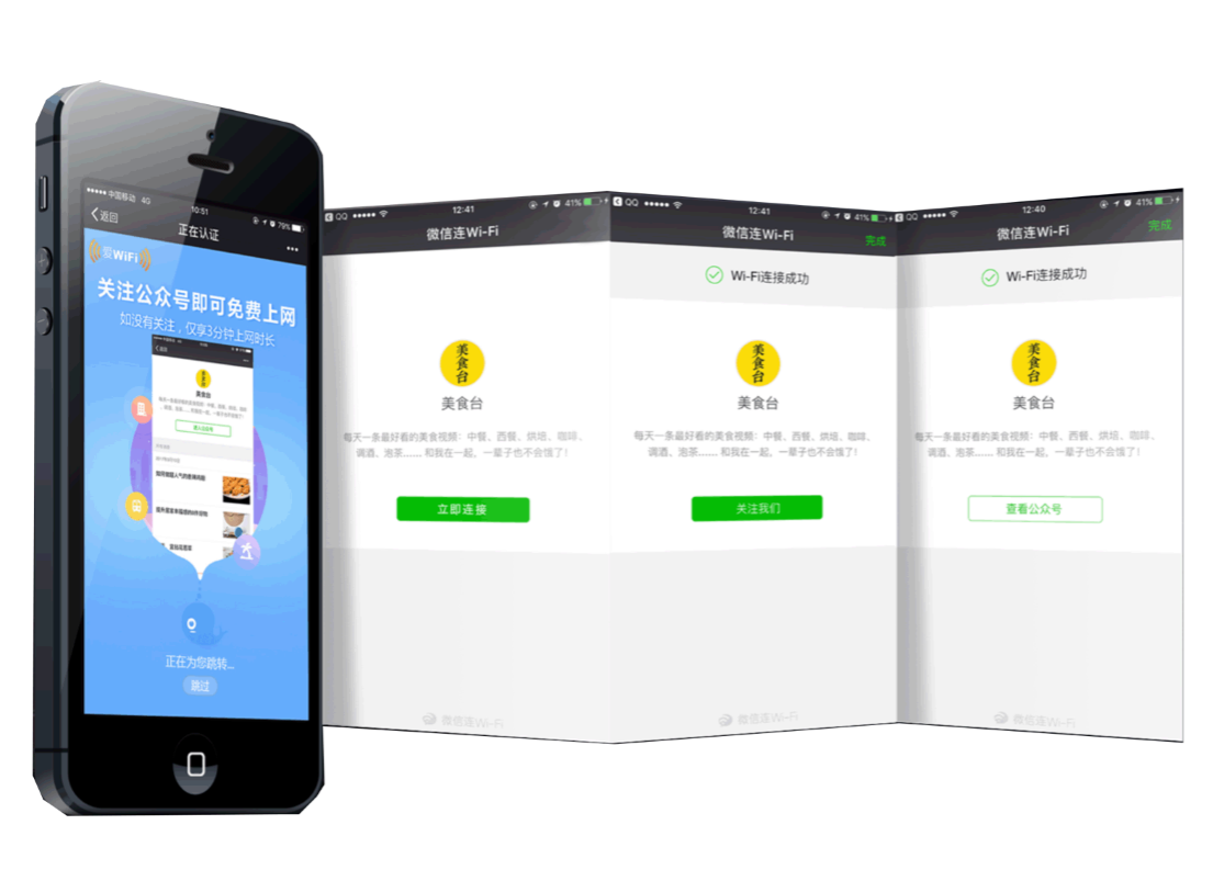 微信公众号连WiFi加粉工作原理是用户连接服务商在公众场合部署好的wifi,用户只要关注指定公众号即可免费上网,此方式加粉是唯一微信官方授权的加粉方式。