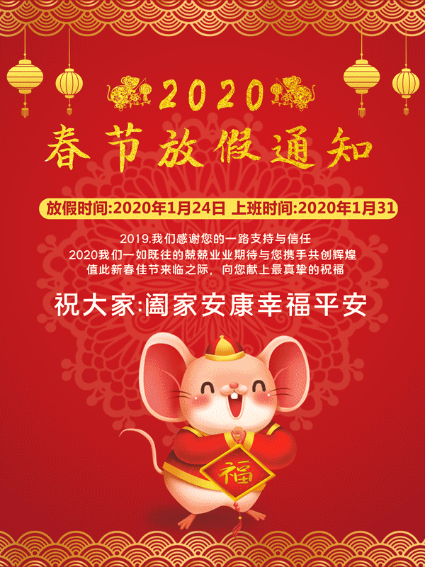 春节放假时间:2020124日到2020130 ,131日正常上班。